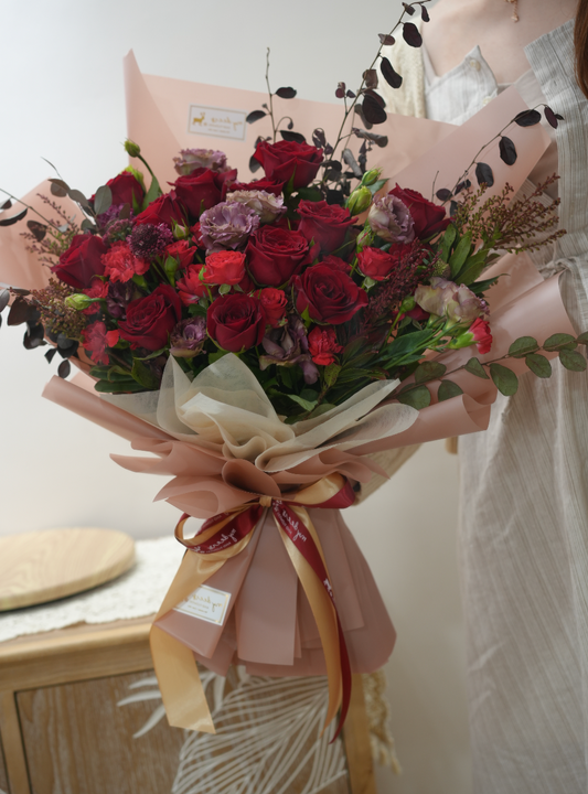 FQ009 - “Golden Ember " 19枝紅粉玫瑰花束|生日花束|感恩花束|週年紀念花束|升職榮休花束