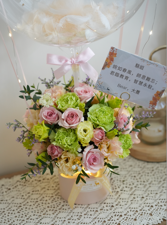 FXB017- 熱氣球紅玫瑰鮮花花盒