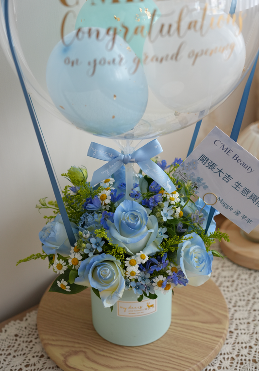 FXB016 - 熱氣球藍星花玫瑰花盒