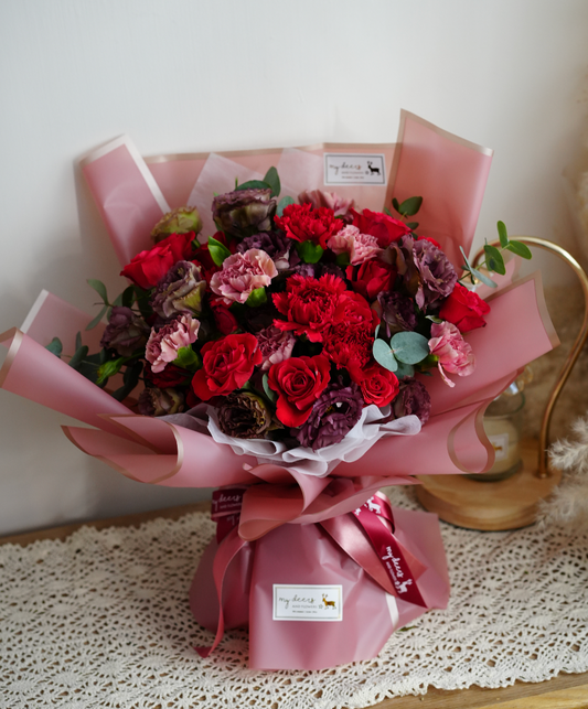 FQ005- 紅色康乃馨玫瑰花束|生日花束|感恩花束|週年紀念花束|升職榮休花束