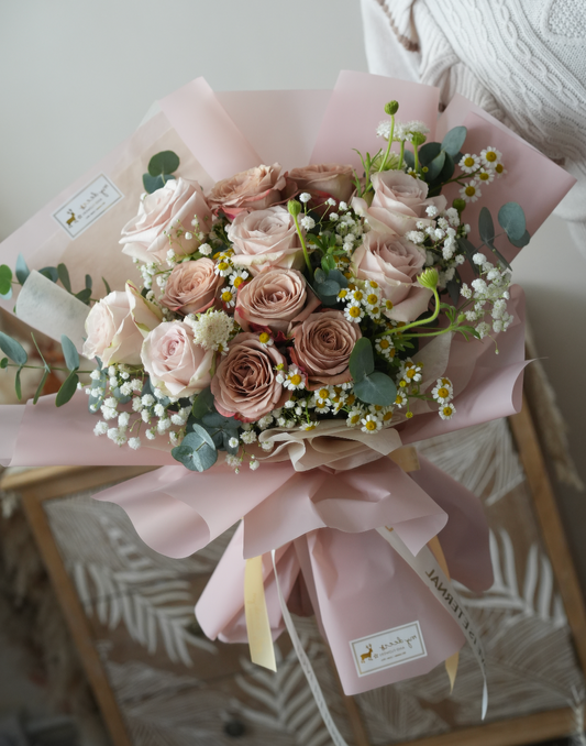 FQ001 - “Cappuccino Vintage“ 復古玫瑰鮮花束|生日花束|感恩花束|週年紀念花束