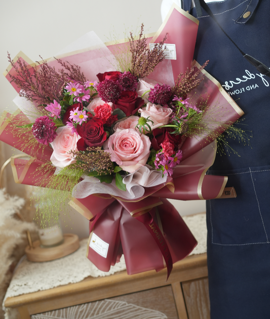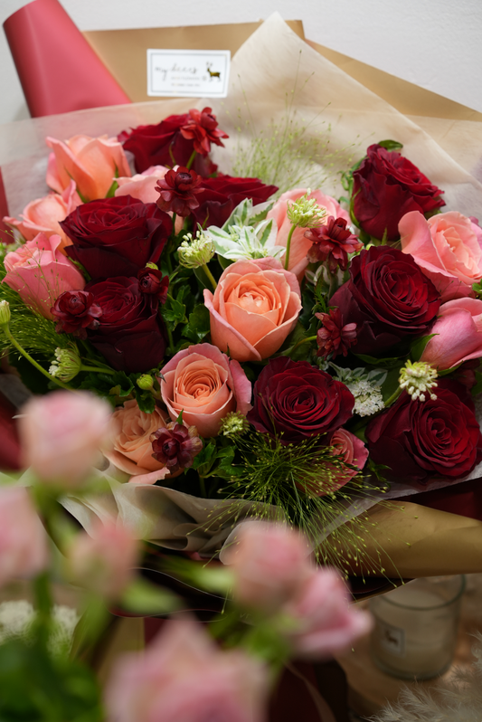 FQ009 - “Golden Ember " 19枝紅粉玫瑰花束|生日花束|感恩花束|週年紀念花束|升職榮休花束