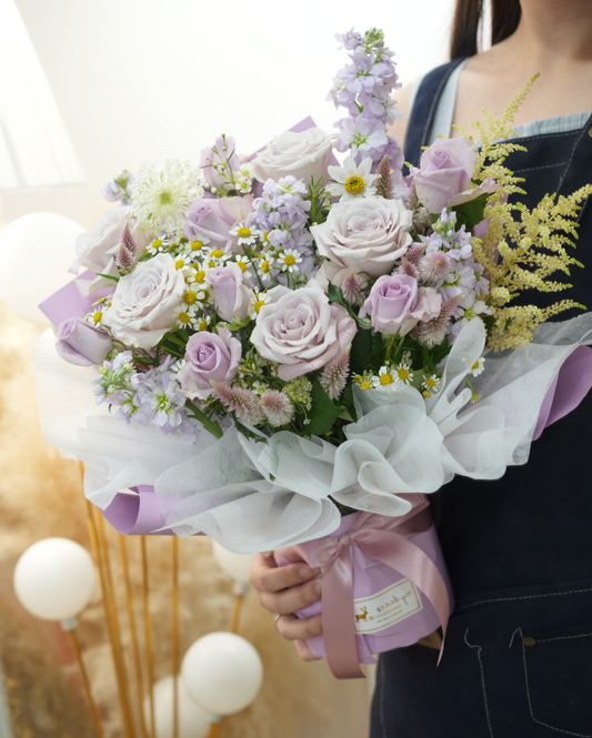 FX011 - (花紙款) Regal Purple Harmony 淺紫色大玫瑰花盒