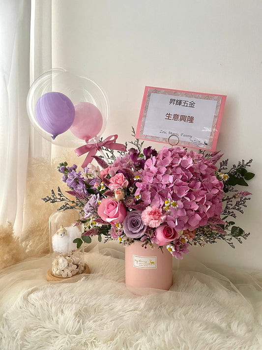 FX014 - 桃紅紫色繡球玫瑰花盒