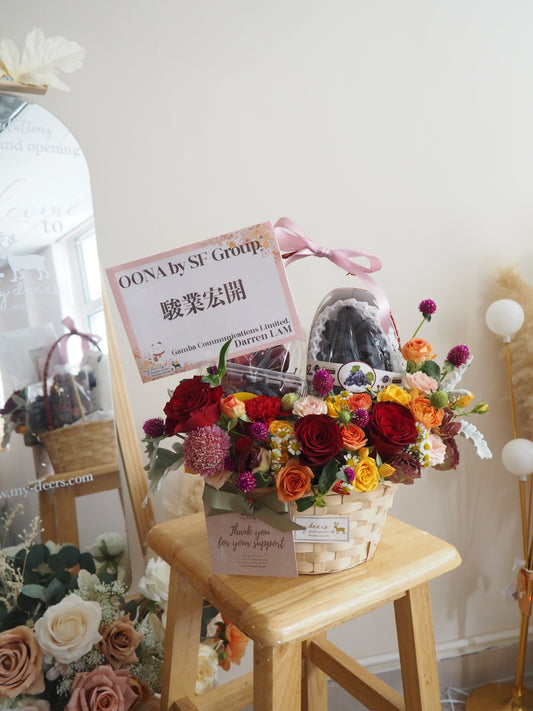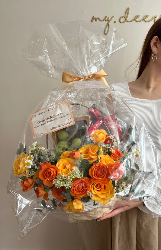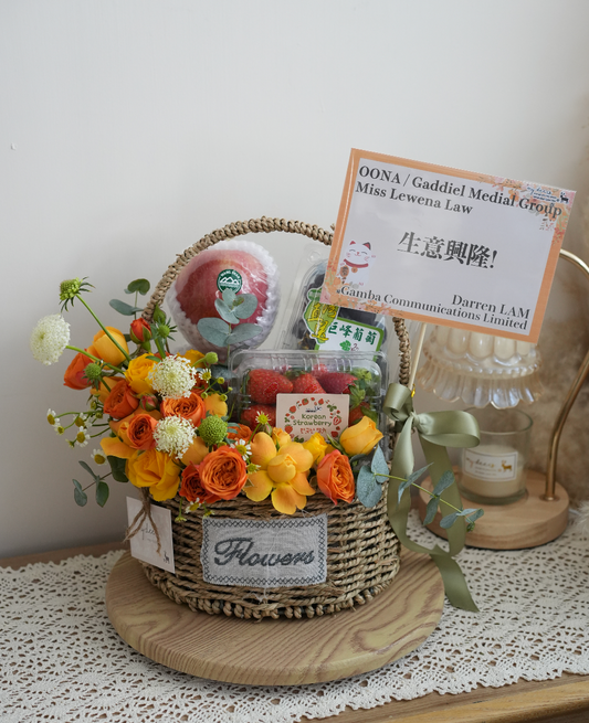 FF003 - Deluxe Basket 鮮果鮮花籃 (手提藤籃款)
