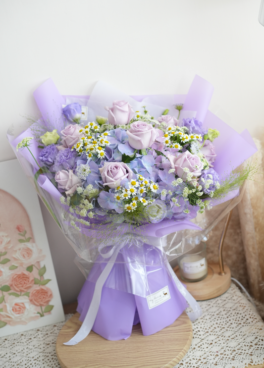FQ046- 韓式紫色繡球碎淺紫玫瑰鮮花花束|生日花束|畢業花束|升職榮休花束