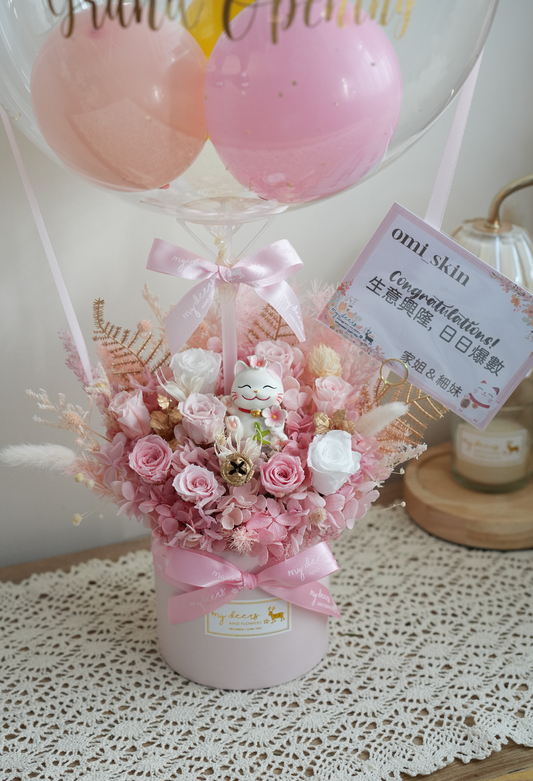 PXB004 - 氣球 Pink tone 粉色玫瑰保鮮花花盒