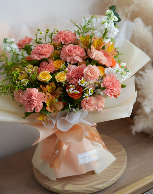 FQ010- “Sunrise Harmony " 橙康乃馨玫瑰花束|生日花束|感恩花束|週年紀念花束|升職榮休花束