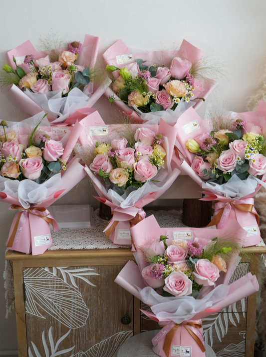 FQ017- Petite Lady Pink 玫瑰花束 (需訂2束或以上)|公司團體訂購花束|升職榮休花束