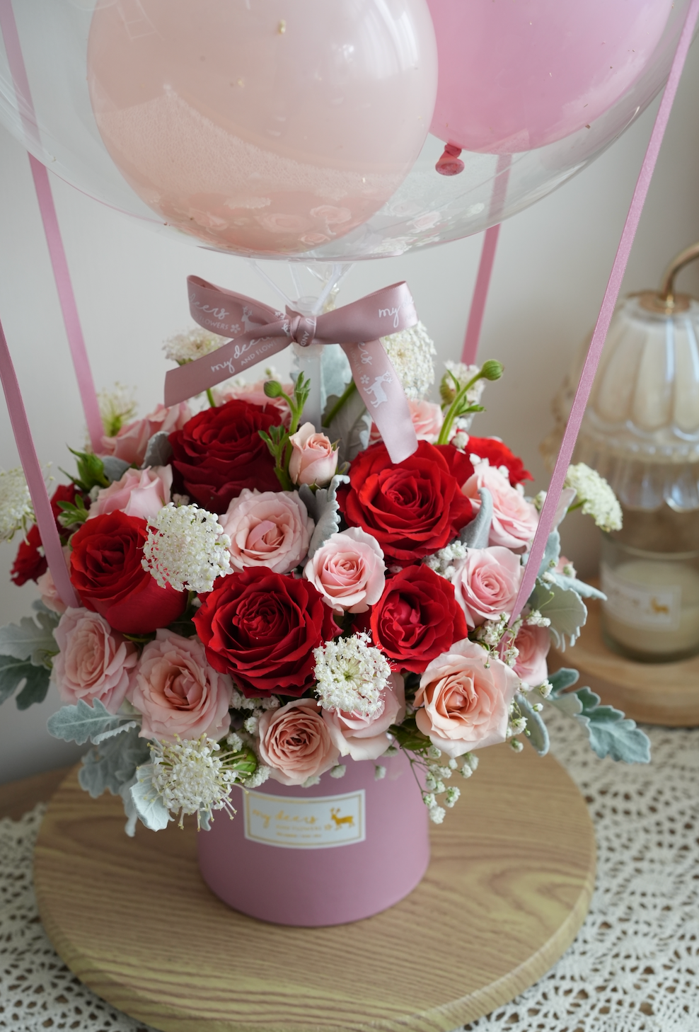 FXB004 - 熱氣球粉紅玫瑰花盒