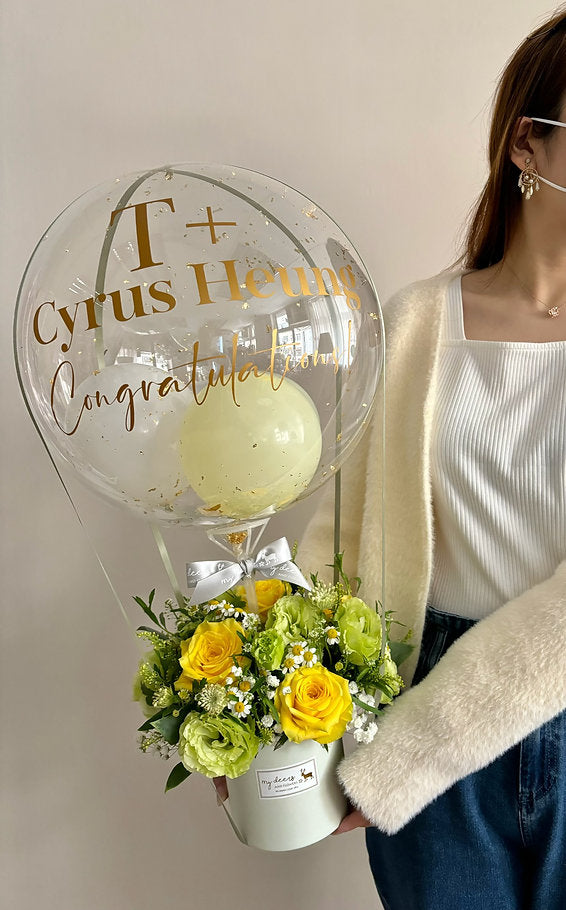 FXB009 - 熱氣球黃色大玫瑰小清新花盒