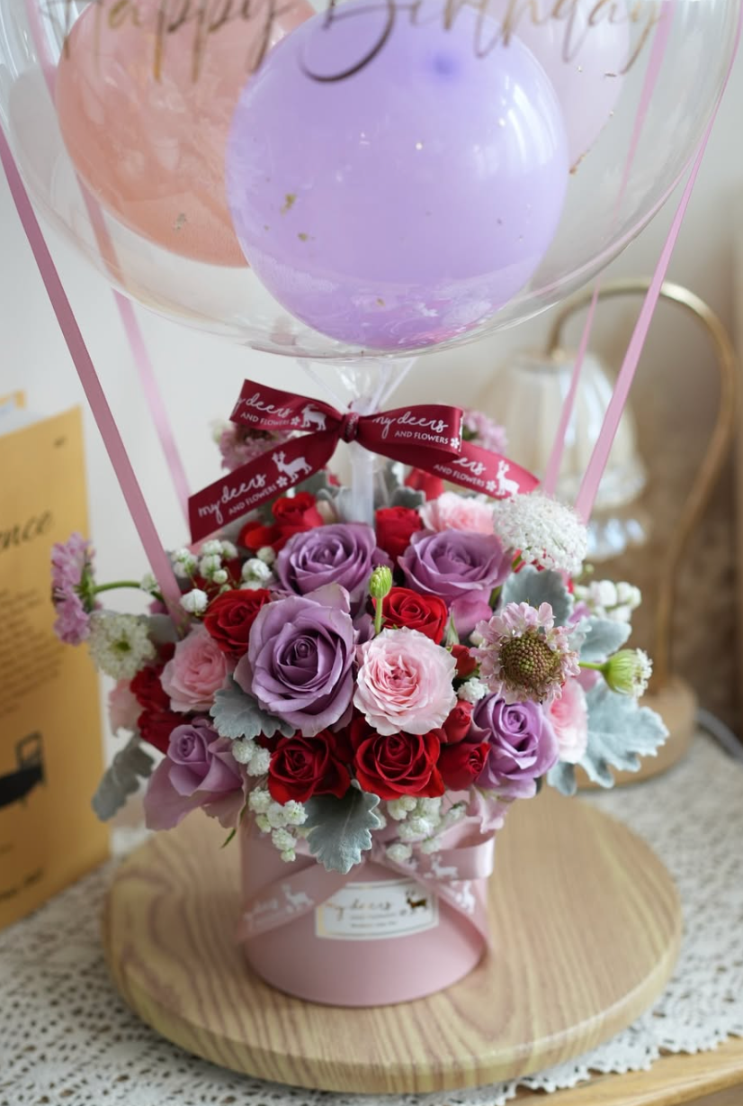 FXB019 - 大紅大紫熱氣球玫瑰花盒
