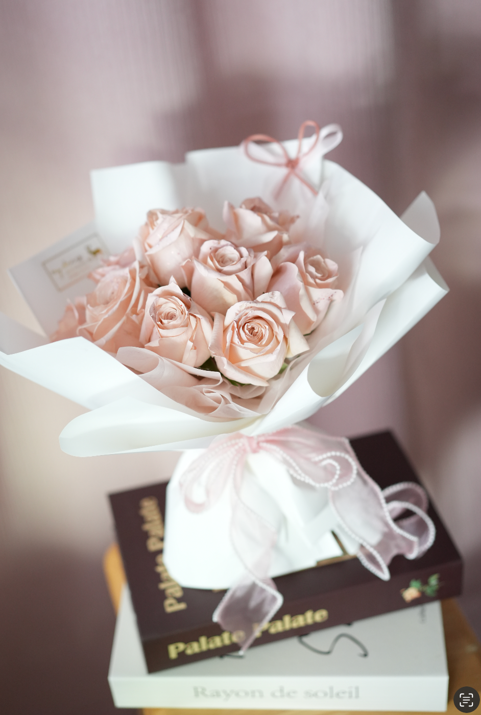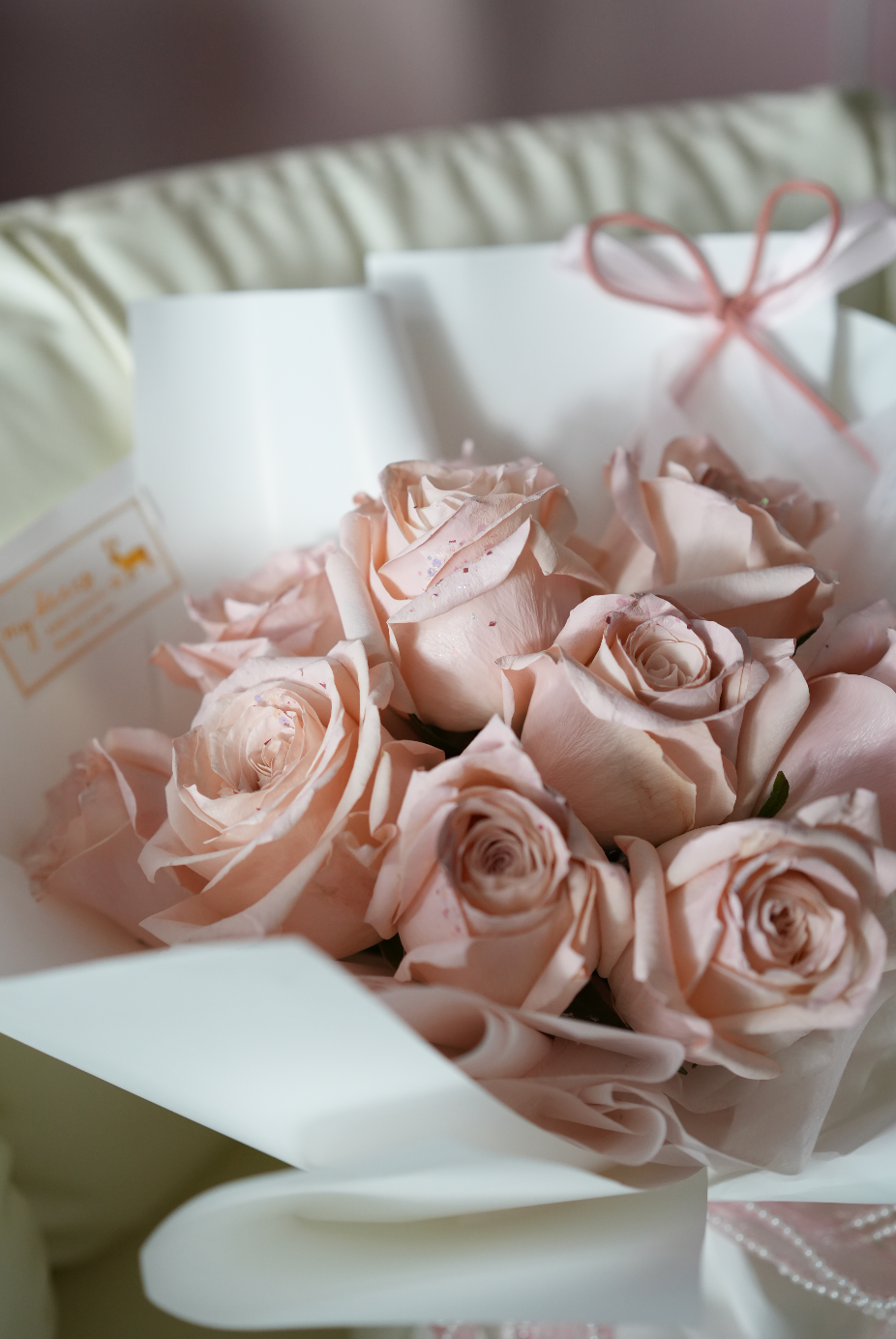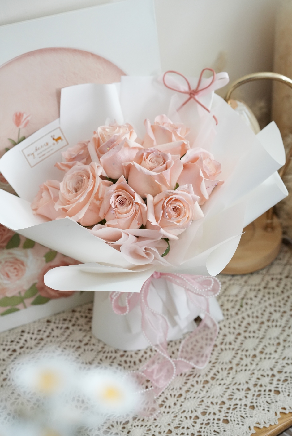 V008 - 人氣之選 噴染閃閃珠光色粉玫瑰花束|情人節花束|