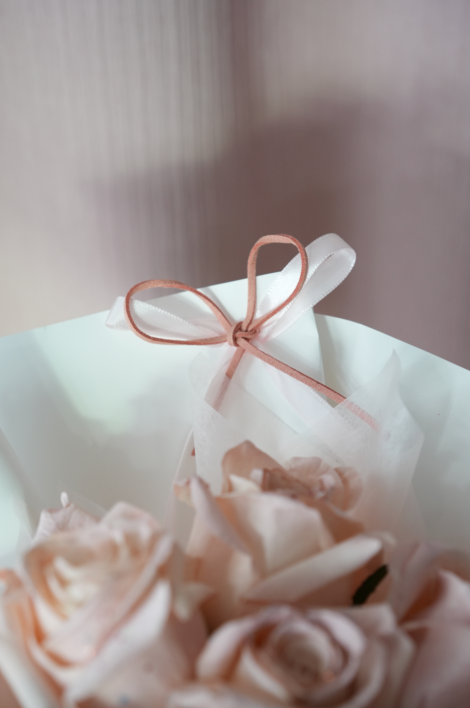 主要花材:自家噴染珠光粉紅色玫瑰花